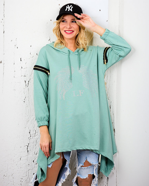 Royalfashion Hanorac supradimensionat pentru femei verde cu fermoare