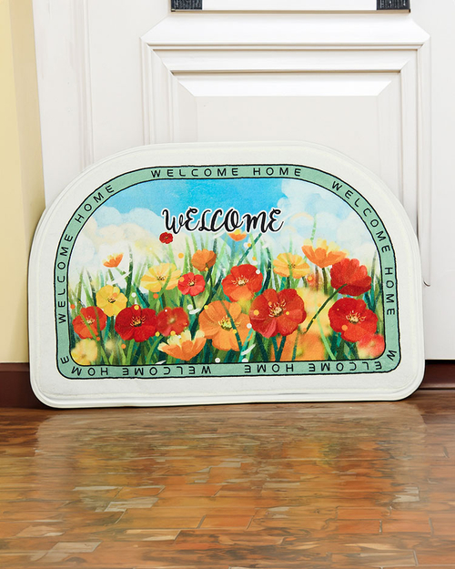 • Covor mic și colorat, cu păr scurt, cu model floral. Este moale și delicat, ceea ce îl face extrem de plăcut la atingere. Un avantaj suplimentar al covorașului este partea inferioară antiderapantă.