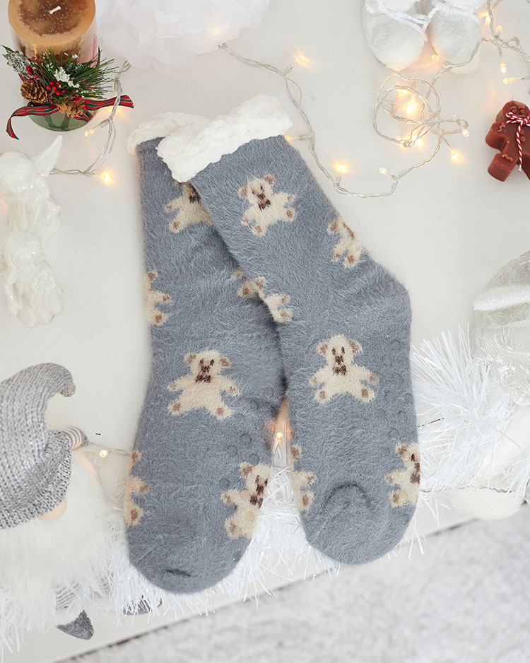 Royalfashion Șosete pentru femei gri încălzite cu ursuleți
