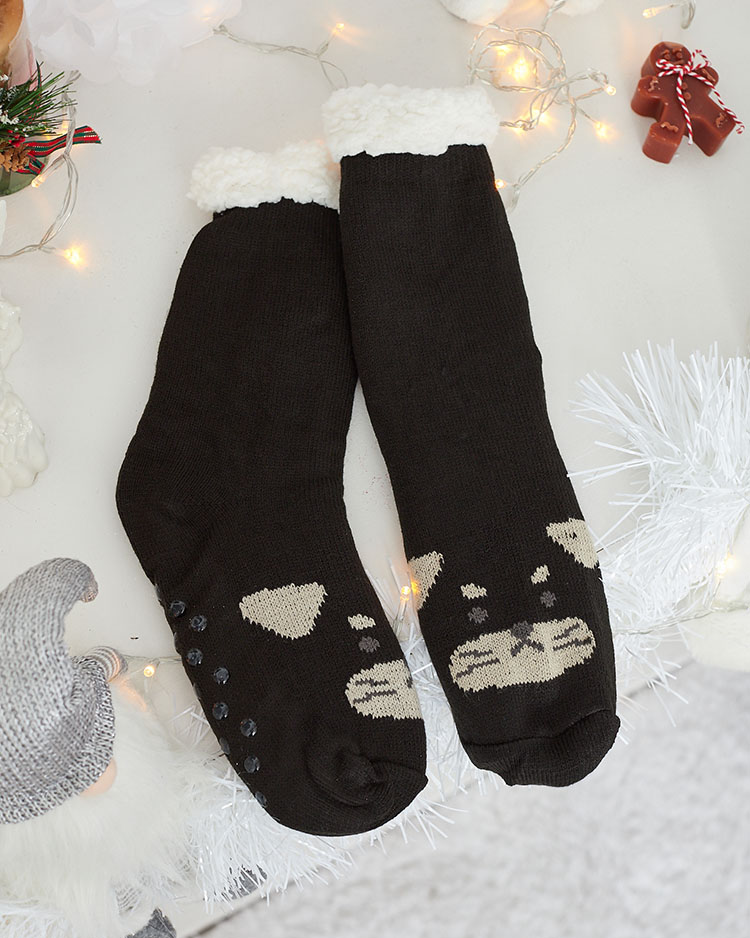 - Șosete groase frumoase pentru femei, finisate cu imprimeu. Interior izolat cu piele de oaie caldă albă. Șosetele sunt minunate pentru serile mai reci!