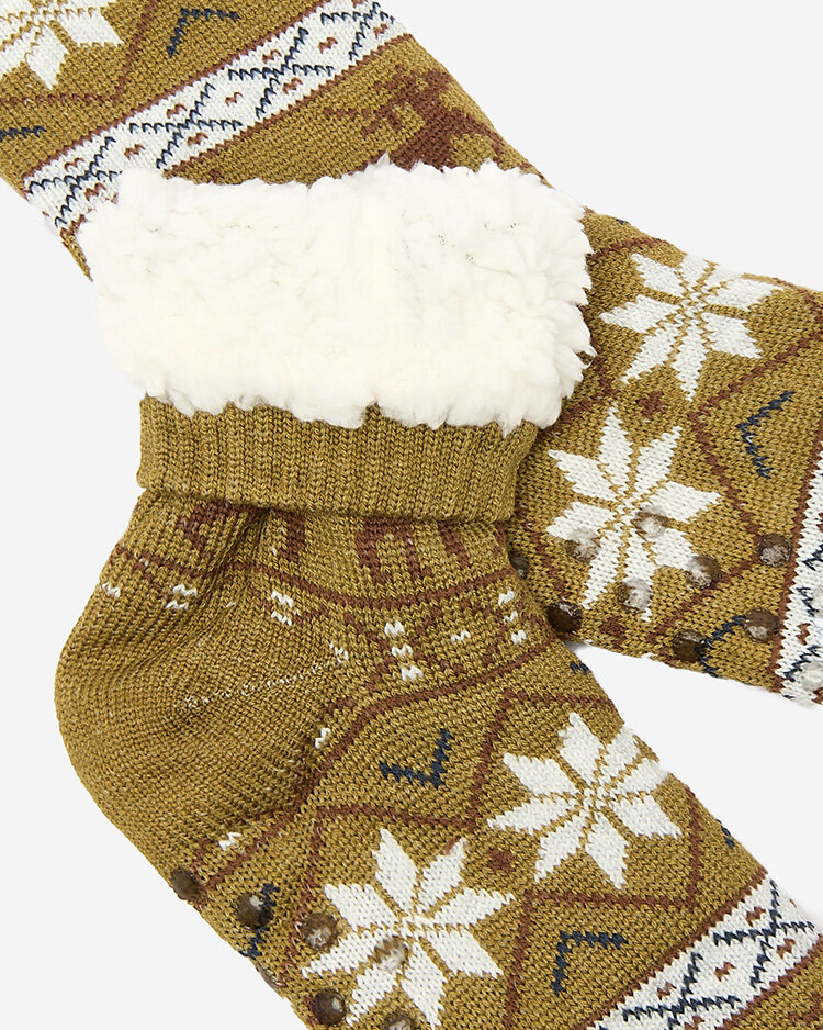 - Șosete groase pentru bărbați, izolate în interior cu piele de oaie caldă. Modelul este finisat cu un model de Crăciun și cu un fund antiderapant. Șosetele vor fi minunate pentru zilele mai reci!
