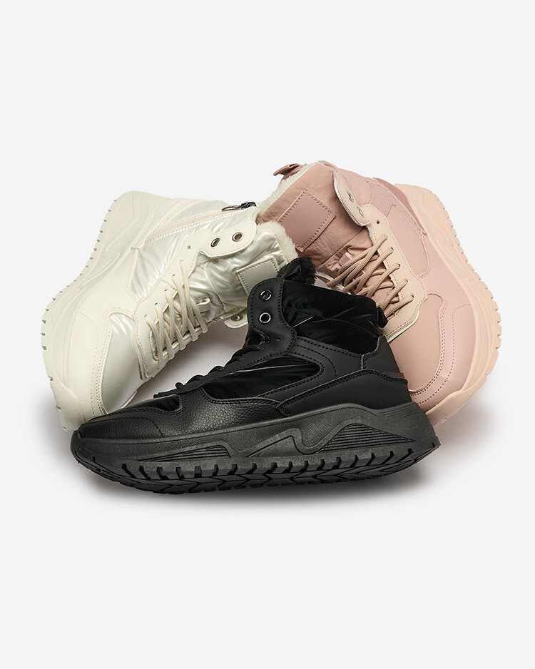 - Adidași sport pentru femei pe o talpă mai groasă. Partea superioară legată dintr-o combinație de eco piele și țesătură netedă. Captușiti complet cu blăniță în interior. Perfect pentru ținute sport!