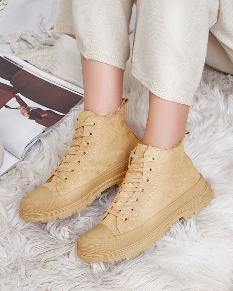 - Pantofi sport a'la înălțime pentru femei, unici. Partea superioară cu șireturi este confecționată din piele ecologică de căprioară, iar partea de mijloc este izolată cu blană moale. Fabricat solid și foarte confortabil datorită tălpii moi din cauciuc!