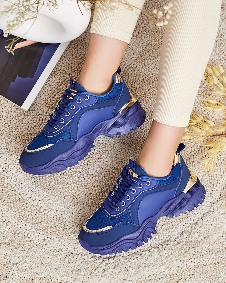 - Adidași sport pentru femei din piele ecologică. În interior există o talpă din material textil. Modelul este cu șireturi, pe o talpă solidă cu o inserție argintie în partea din spate. Vor fi un accesoriu excelent pentru stilul de zi cu zi.