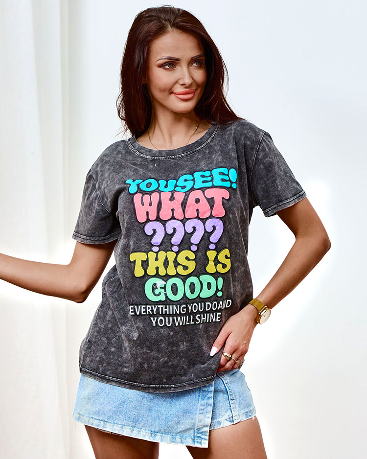 - Tricou imprimat casual pentru femei cu mâneci scurte. Confecționat din țesătură de bumbac. Baza perfectă pentru multe look-uri de zi cu zi! NOTĂ: Precizia măsurătorilor (+/-) 1 cm. Dimensiuni măsurate în poziție plată.