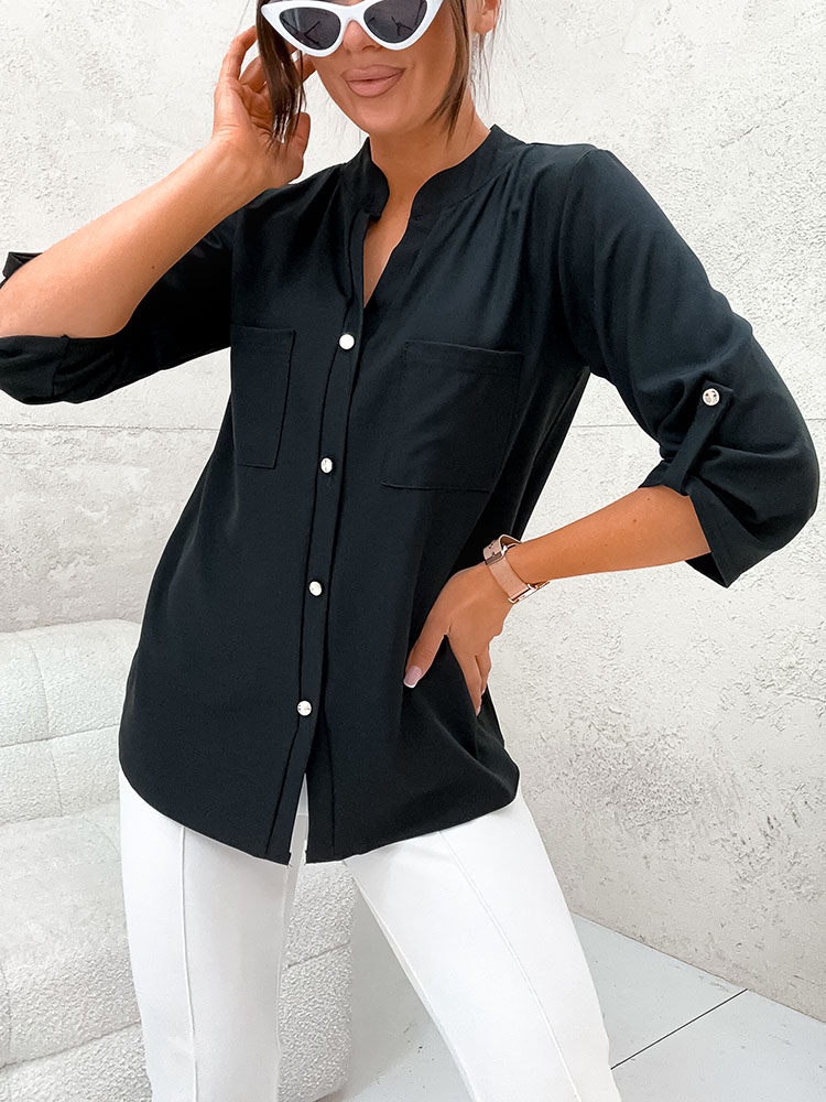 - Bluză clasică de damă a'la cămașă cu mâneci lungi, rulate. Modelul cu guler, se încheie cu nasturi. Must have în dulapul fiecărei femei!