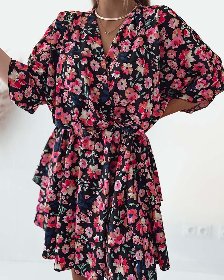 - Rochia mini frumoasă pentru femei este realizată din țesătură ușoară cu model original. La înălțimea taliei elastic stretch. Produsul are mâneci scurte, un decolteu în formă de inimă și un tiv larg.