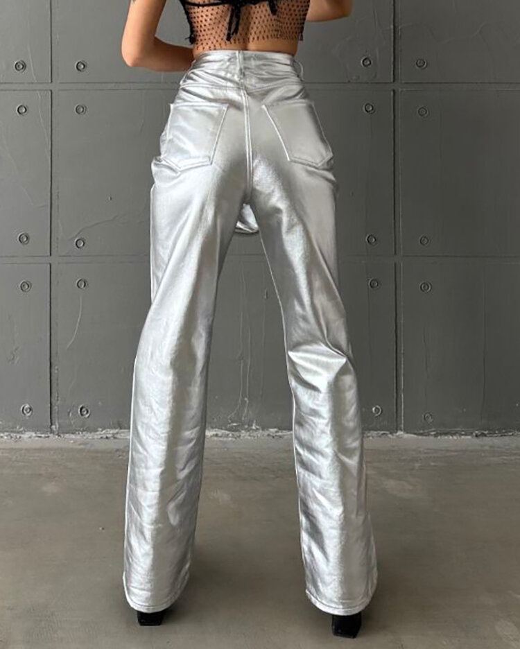 Royalfashion Pantaloni largi metalici pentru femei