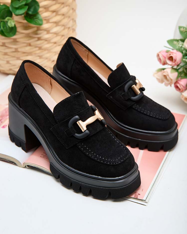 - Mocasini de damă superbi, cu toc înalt. Model casual, confecționat din piele ecologică întoarsă și căptușeală din piele naturală. Vârf rotunjit. Bază ideală pentru multe look-uri de zi cu zi!