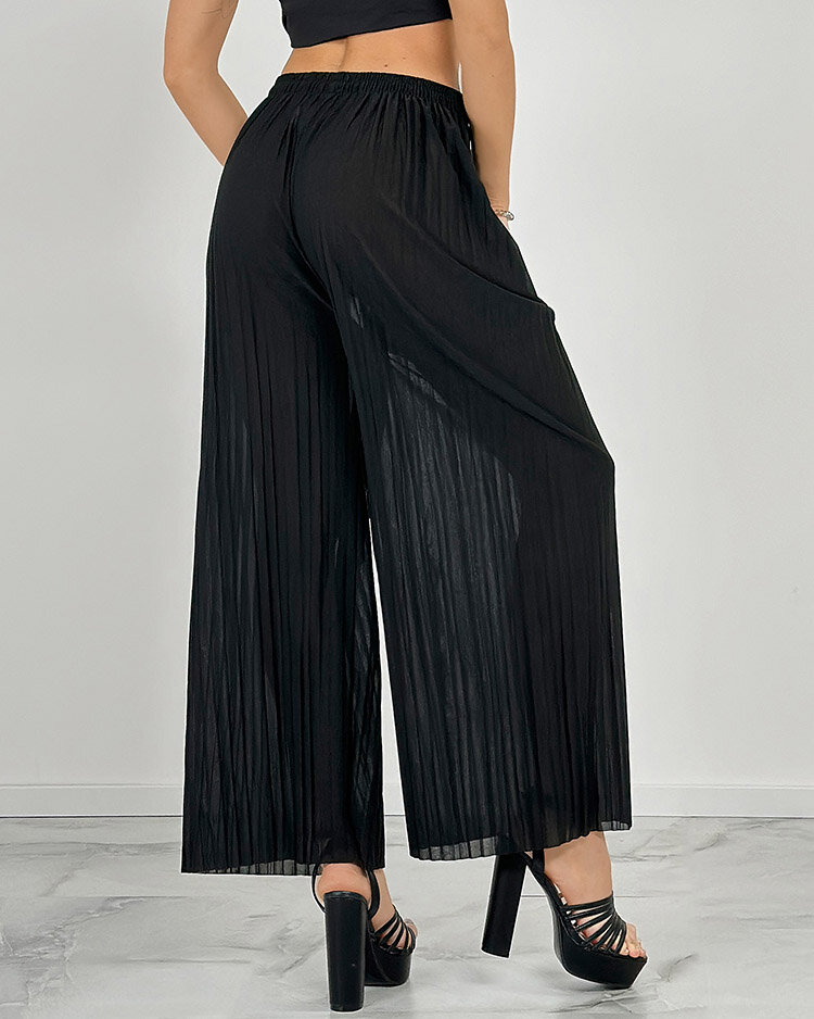 - Pantaloni largi plisați senzaționali, realizați din material ușor, modelul are o bandă elastică și legături în talie. Must have în dulapul tău! NOTĂ: Precizia măsurătorilor (+/-) 1 cm.