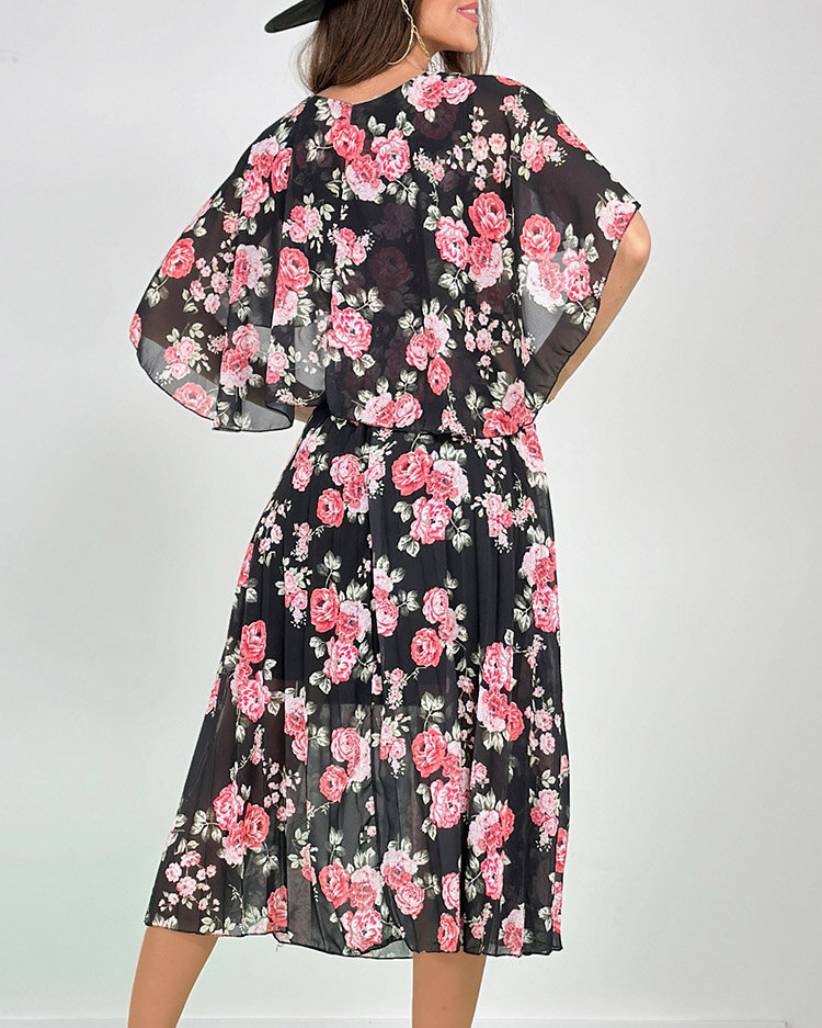 Royalfashion Rochie midi plisată cu motive florale pentru femei