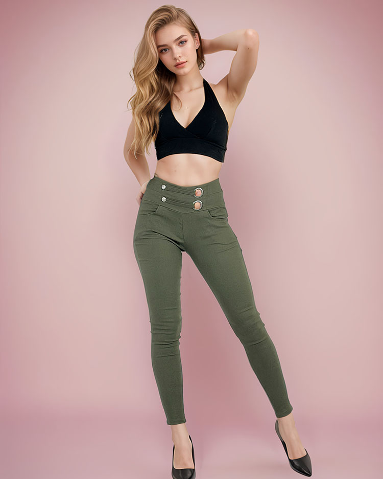 - Pantaloni teggings atemporali pentru femei, confecționați din material elastic. Modelul are talie înaltă, talie elastică largă și 2 buzunare glisante în față și în spate. Perfecți pentru purtarea de zi cu zi!