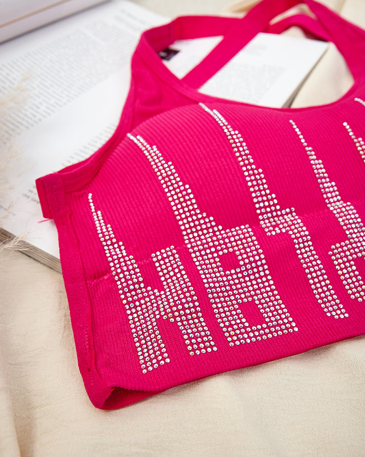 - Sutien sport pentru femei din material elastic, plăcut. Model cu bretele nereglabile, încrucișate, fără închizătoare și cu inserții detașabile, finisate cu elastic lat în partea de jos și decorate cu zirconii. Se va potrivi perfect corpului.