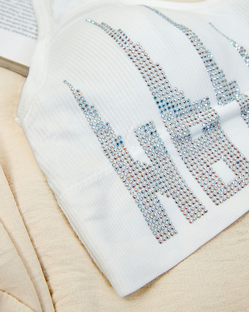 • Sutien sport pentru femei din material elastic, plăcut. Model cu bretele nereglabile, încrucișate, fără închizătoare și cu inserții detașabile, finisate cu elastic lat în partea de jos și decorate cu zirconii. Se va potrivi perfect corpului.