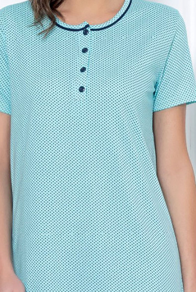 - Cămașă cu mânecă scurtă foarte confortabilă. Confecționată din bumbac 100% și finisată cu un imprimeu decorativ. Modelul are un decolteu rotund cu nasturi decorativi. NOTĂ: Precizia măsurătorilor (+/-) 1 cm.