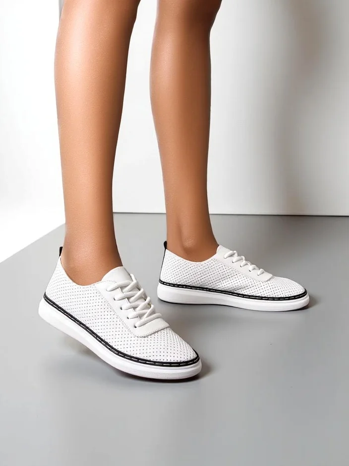 - Adidași clasici traforați, interiorul este căptușit cu țesătură. Foarte confortabili datorită tălpii din cauciuc. Încălțămintea merge bine cu multe ținute de zi cu zi!