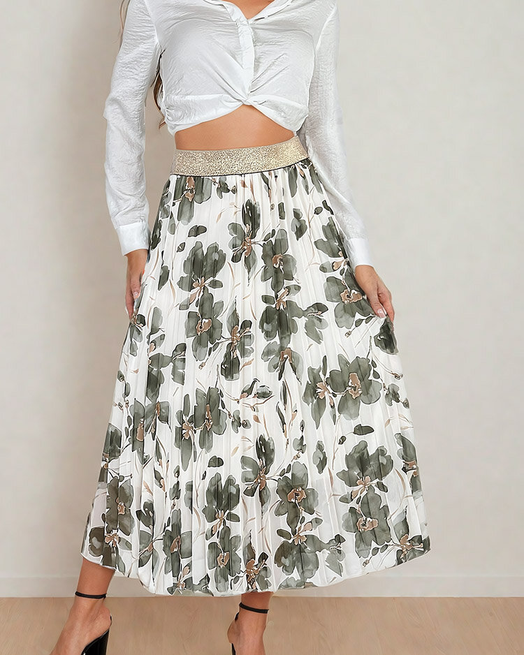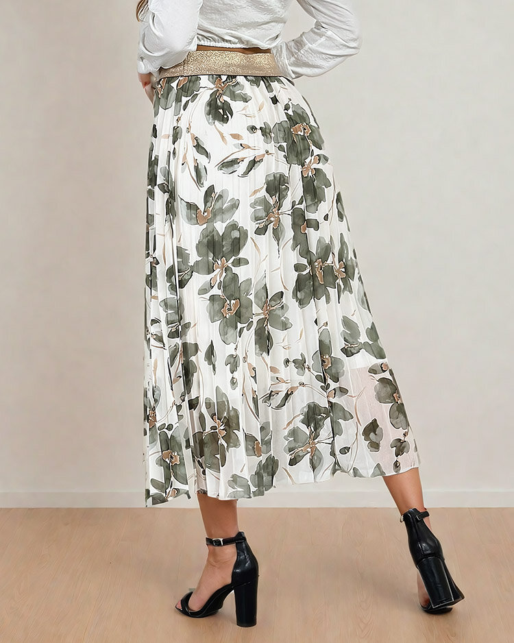 - Fustă plisată de lungime midi pentru femei. Modelul are o bandă elastică în talie, care evidențiază perfect talia. În plus, este decorată cu un model floral. Această fustă este un accent deosebit pentru look-ul dvs. de zi cu zi!