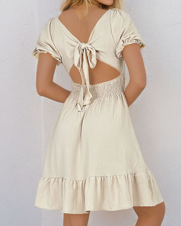 - Rochie ușoară pentru femei cu volane decorative și legătură decorativă la spate, lungime până la genunchi, confecționată din material plăcut. Model cu un decolteu simplu a'la hiszpanka și o lățime elastică în talie. Purtați-o cu sandale! NOTĂ: Precizia mă
