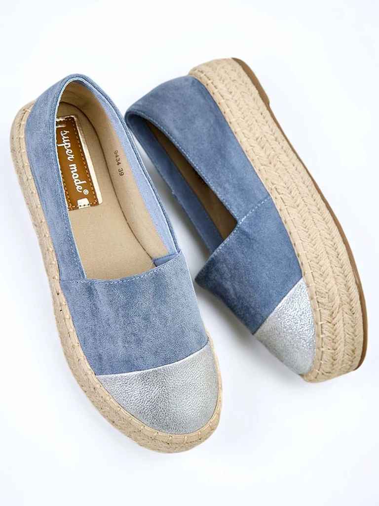 - Espadrile unice pentru femei, confecționate din piele ecologică de căprioară și talpă din material textil. Talpa plată decorată cu cordon de iută oferă confort. Model de tip slip-on. Un accesoriu perfect pentru stilurile de vară!