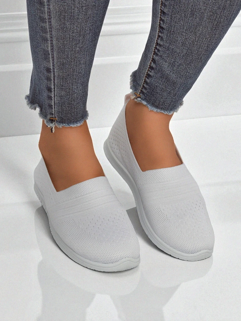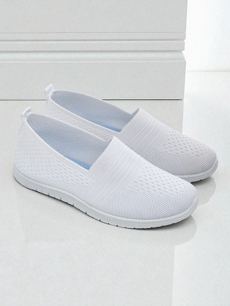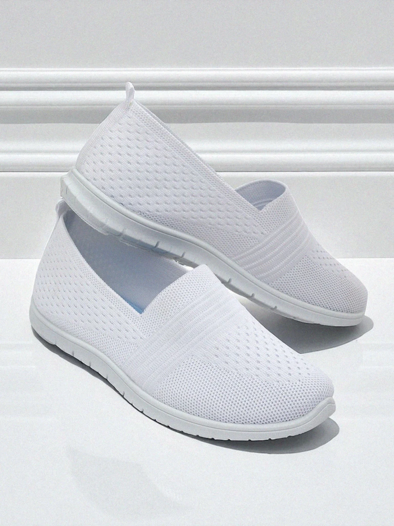 Balerin blan Ariadne pou fanm ki fèt ak twal rèspirant sou sèl plat