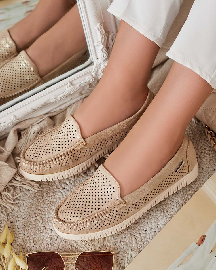 - Mocasini din piele de damă cu talpă plată. Modelul este confecționat din piele ecologică. În interiorul tălpii interioare realizate din piele naturală. Baza perfectă pentru fiecare zi!