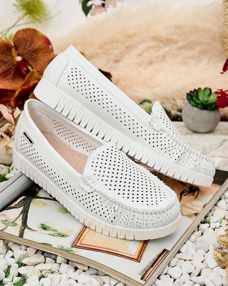 - Mocasini din piele de damă cu talpă plată. Modelul este confecționat din piele ecologică. În interiorul tălpii interioare realizate din piele naturală. Baza perfectă pentru fiecare zi!