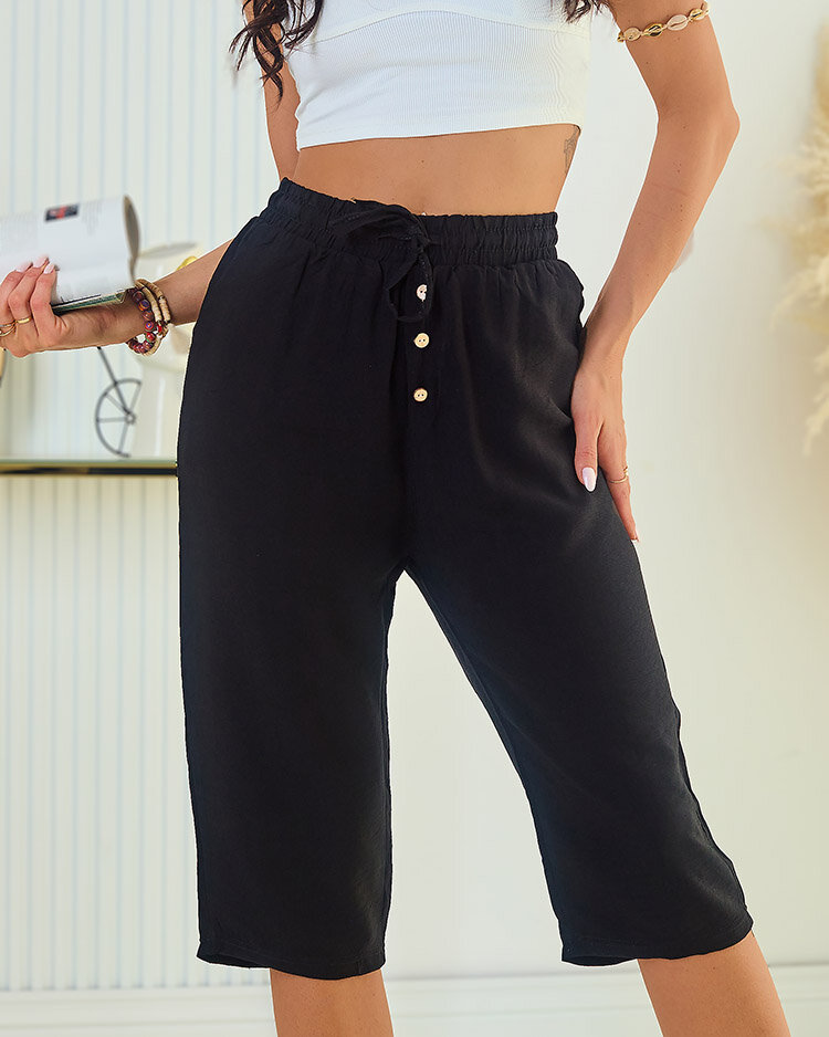 - Pantaloni scurți 3/4 pentru femei fenomenali, realizați din țesătură ușoară, modelul are o bandă elastică și se leagă în talie. Un hit al acestui sezon! NOTĂ: Precizia măsurătorilor (+/-) 1 cm.