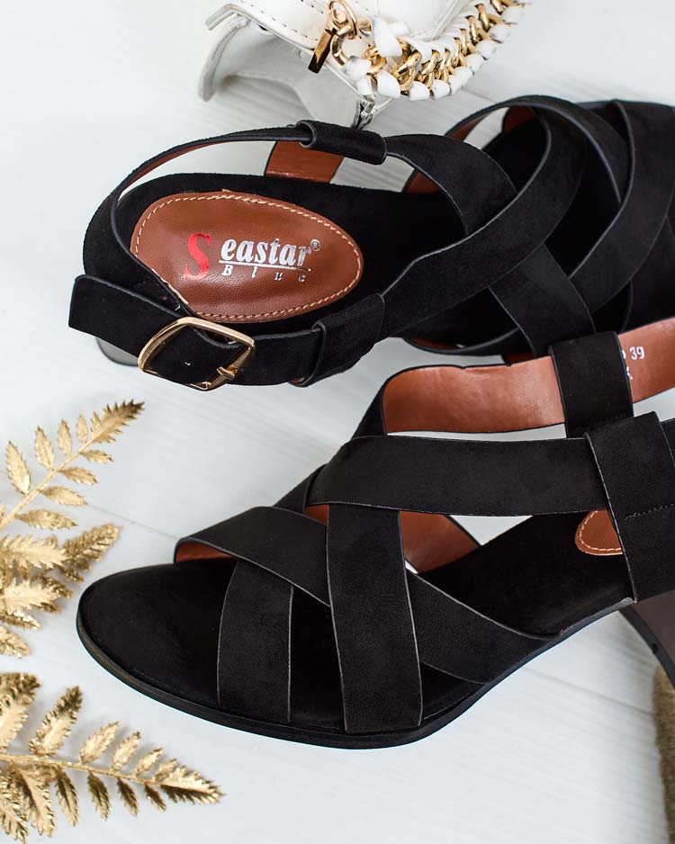 - Sandale stiletto joase unice realizate din piele de căprioară ecologică și talpă din piele ecologică. Au o închidere decorativă cu cataramă. O combinație de stil și confort. Postamentul conferă eleganță subtilă, iar catarama le face ușor de încălțat!
