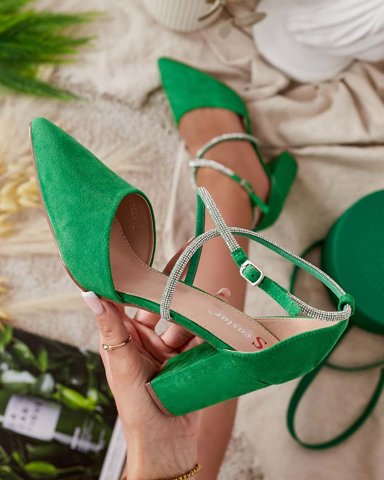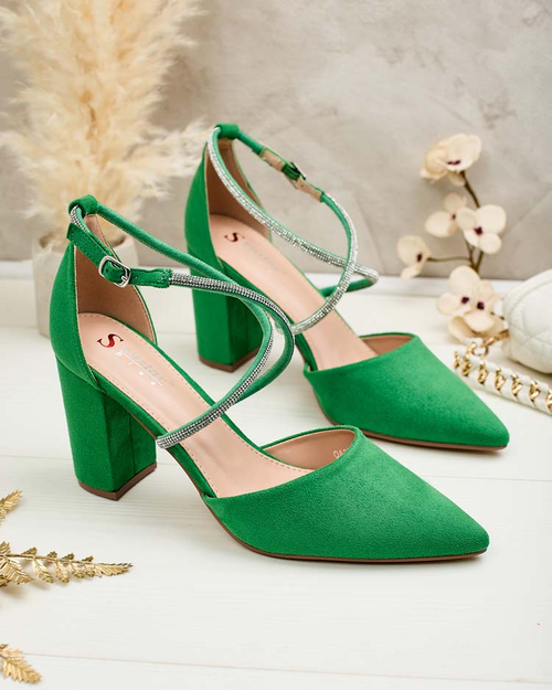 - Pantofi frumoși de damă cu post - o combinație de clasic și elegant cu confort! Perechea este confecționată din piele eco-suede. Talpă din piele ecologică, modelul se închide cu o curea la gleznă, botul ascuțit. Must have în dulapul oricărei femei!