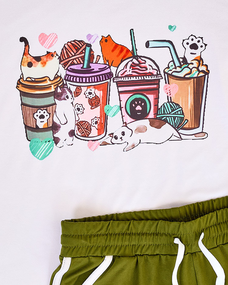 - Set pentru femei realizat din material plăcut. Modelul are un imprimeu decorativ. Bluză cu mâneci scurte și pantaloni scurți cu talie elastică. Simțiți vara în acest set minunat!