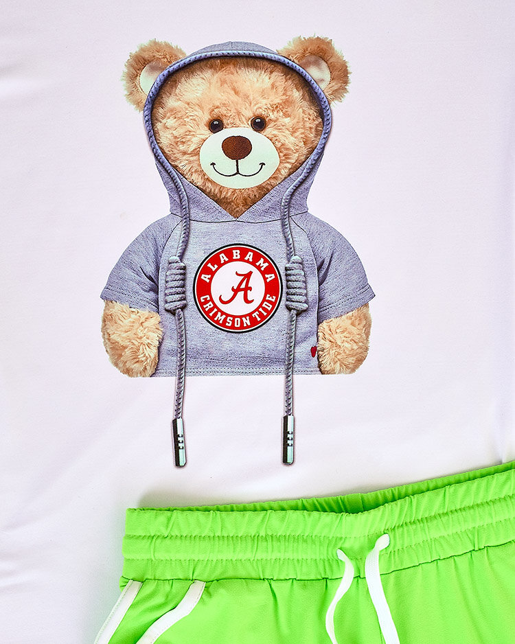 • Set pentru femei realizat din material plăcut. Modelul are un imprimeu cu ursuleți de pluș. Bluză cu mâneci scurte și pantaloni scurți cu talie elastică. Simțiți vara în acest set minunat!