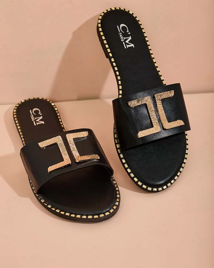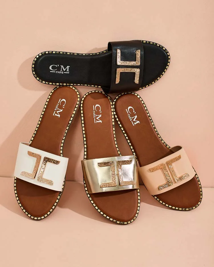 • Flip-flops pentru femei cu talpă plată grozavă. Realizate în întregime din piele ecologică. Au un decor subtil pe partea superioară. O alegere perfectă pentru vacanțe!