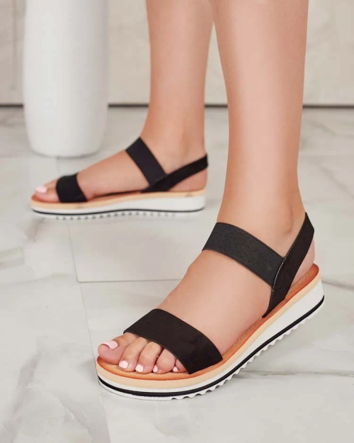 - Sandale cu talpă plată pentru femei - ideale pentru zilele fierbinți de vară. Curelele sunt realizate din piele ecologică de căprioară, în timp ce talpa este din spumă plăcută. Partea din față decorată cu dungi elegante, iar în jurul gleznei o curea.