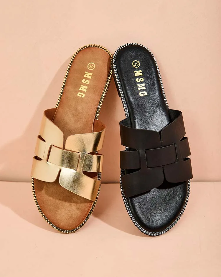 - Flip-flops cu talpă plată pentru femei grozave. Realizate în întregime din piele ecologică. O alegere perfectă pentru vacanțe!