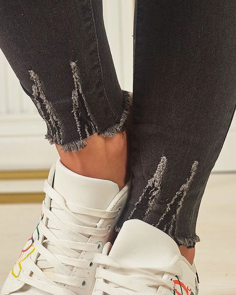 - Pantaloni conici din denim pentru femei, realizați din țesătură de bumbac. Model cu talie medie, închidere cu nasturi și fermoar. Două perechi de buzunare - în spate și în față.