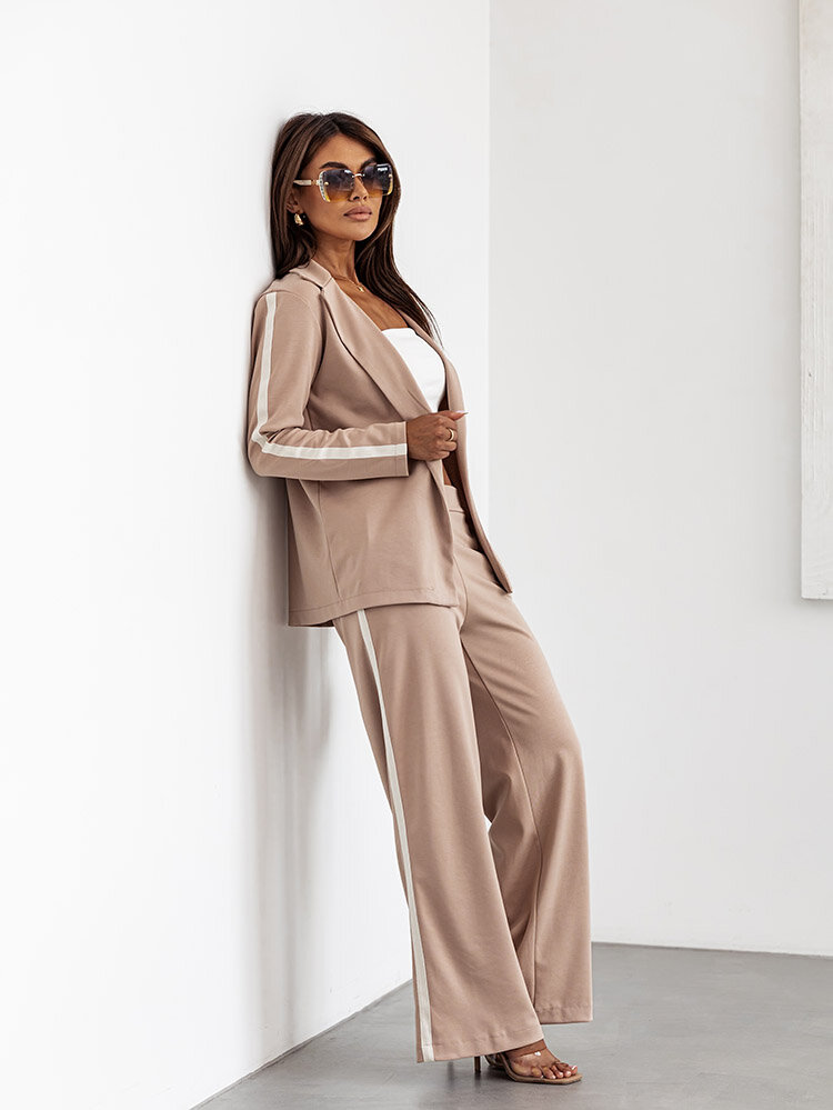 - Set original pentru femei realizat din material textil plăcut. Sweatshirt cu mâneci lungi fără glugă, cu fermoar. Pantaloni largi cu talie elastică și 2 buzunare. Întregul articol de îmbrăcăminte este decorat cu lampas. Eleganță și stil într-unul singur!