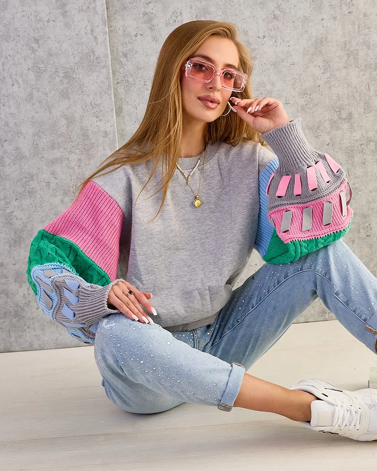 - Adaugă o notă de distracție dulapului tău cu hanoracul nostru unic care încântă cu mâneci colorate de pulover. Decolteul rotund și croiala clasică îl fac alegerea perfectă pentru purtarea de zi cu zi!