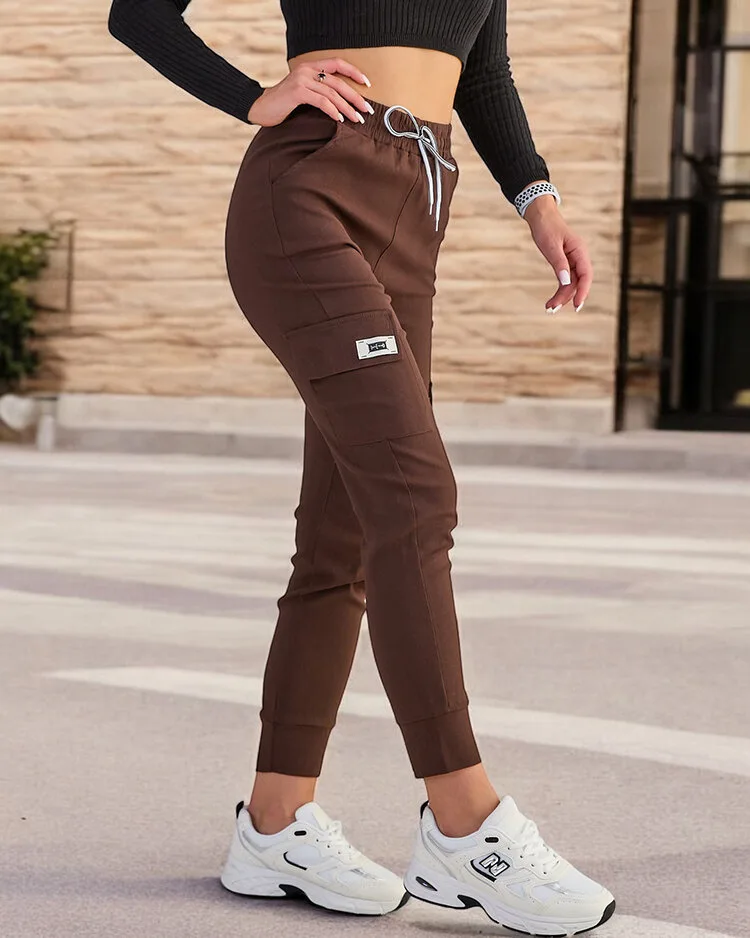 - Pantaloni de luptă confortabili pentru femei din țesătură plăcută. Modelul are 4 buzunare, inclusiv cele laterale. Pantalonii au o bandă elastică și legare la talie. Trebuie să îi ai în dulapul tău!