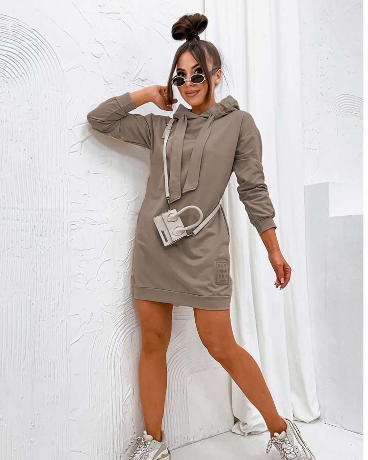 - Rochie mini-bluză pentru femei cu mâneci lungi și decolteu rotund. În plus, are o glugă. Must have al acestui sezon! NOTĂ: Precizia măsurătorilor (+/-) 1 cm. Dimensiunile se măsoară plat.