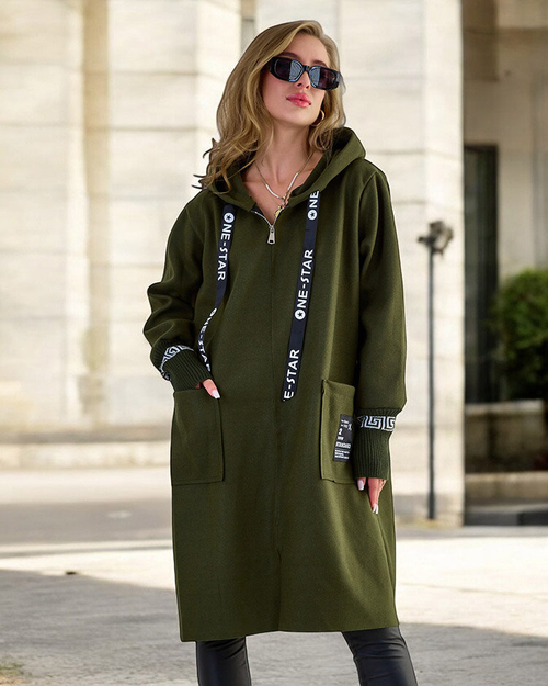 • Jachetă originală pentru femei a'la coat cu glugă. Modelul are mâneci lungi și buzunare cusute. Mâneci finisate cu elastice pentru o potrivire mai bună și confort la purtare. O propunere perfectă pentru toamnă! NOTĂ: Precizia măsurătorilor (+/-) 1 cm.
