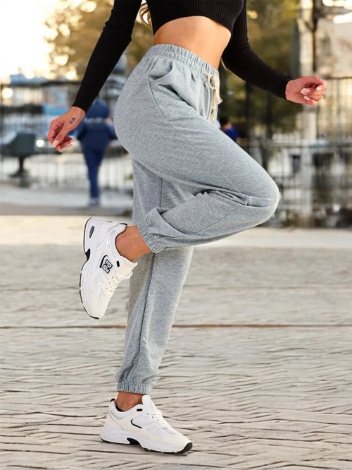 - Pantaloni de trening clasici realizați din țesătură moale și ușoară. Talia elastică largă vă permite să ajustați pantalonii la forma dvs. individuală. În plus, două buzunare glisante pe față.