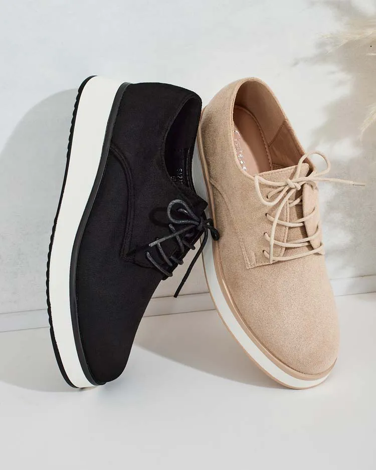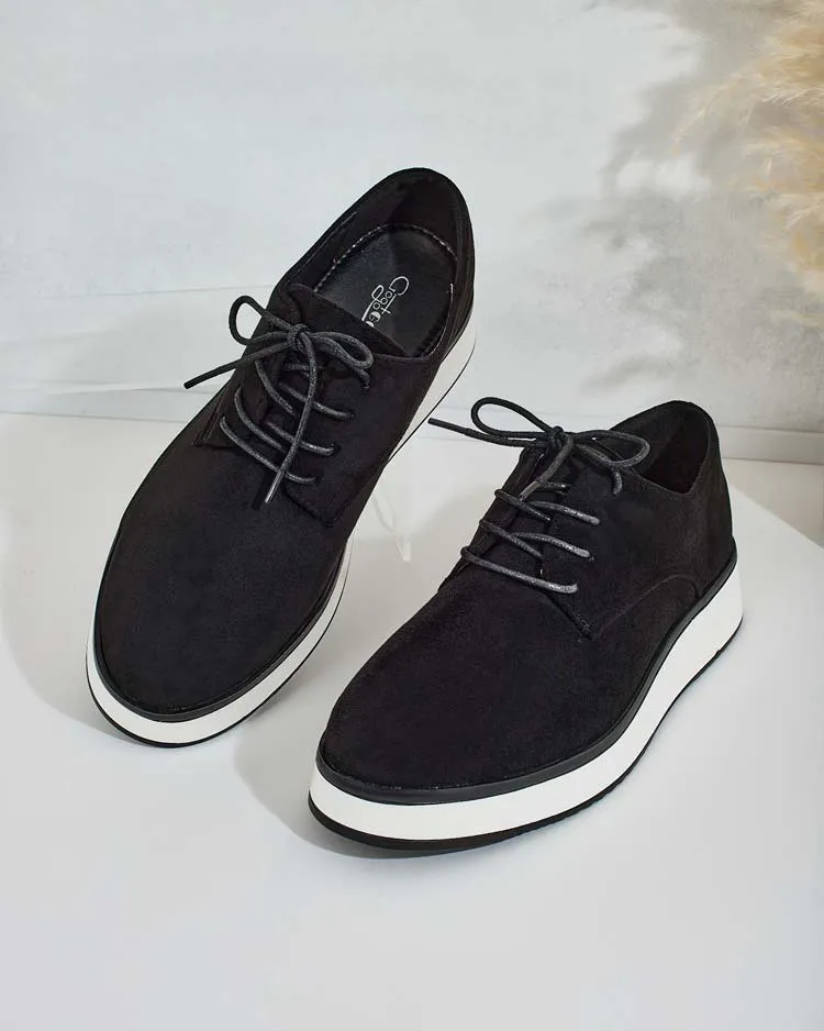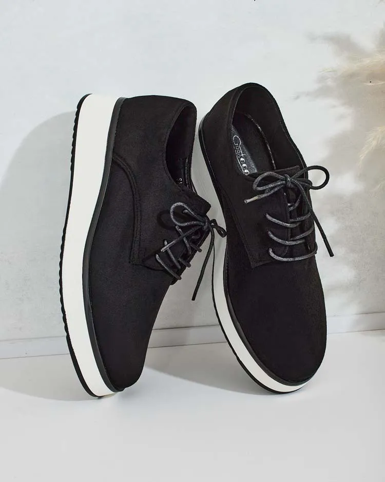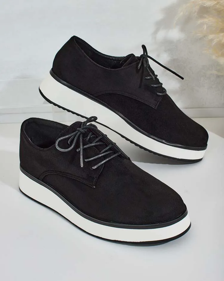 - Cizme de damă lace-up half boots pe o talpă mai groasă. Partea superioară cu șireturi este realizată din piele ecologică mată, în timp ce talpa este din piele ecologică. Baza perfectă pentru ținutele de zi cu zi!
