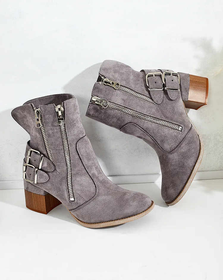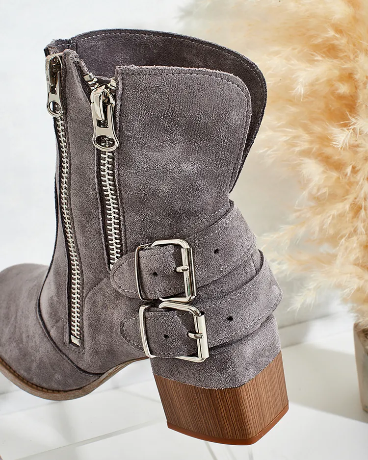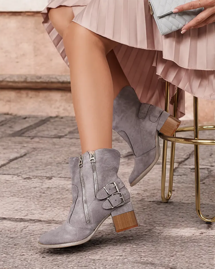 - Cizme elegante cu toc stiletto pentru femei, cu partea superioară decorată cu catarame. Încălțăminte realizată din piele ecologică, talpă interioară din material textil. Model fixat cu fermoar pe interior.
