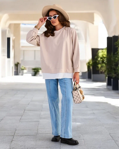 - Adaugă fler ținutelor tale cu hanoracul nostru subțire. Are imitație de cămașă proeminentă. Inserabil peste cap, cu un decolteu rotund și mâneci lungi. Perfect pentru fiecare zi când vrei să te simți casual, dar elegant!