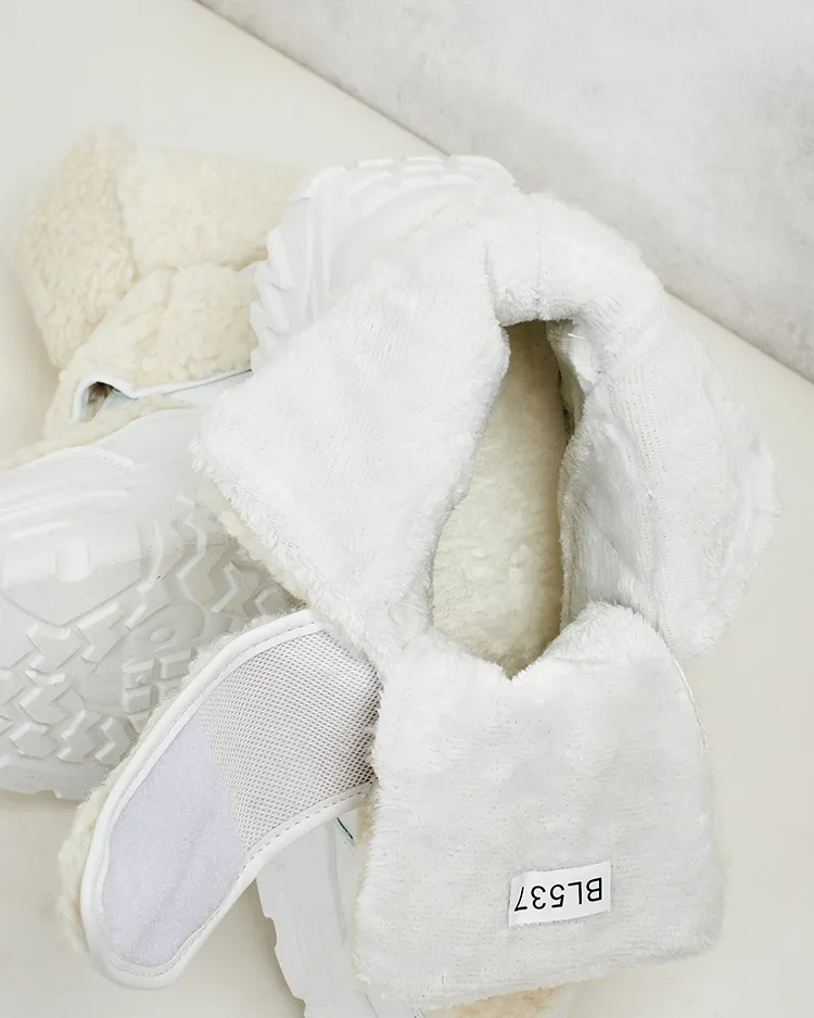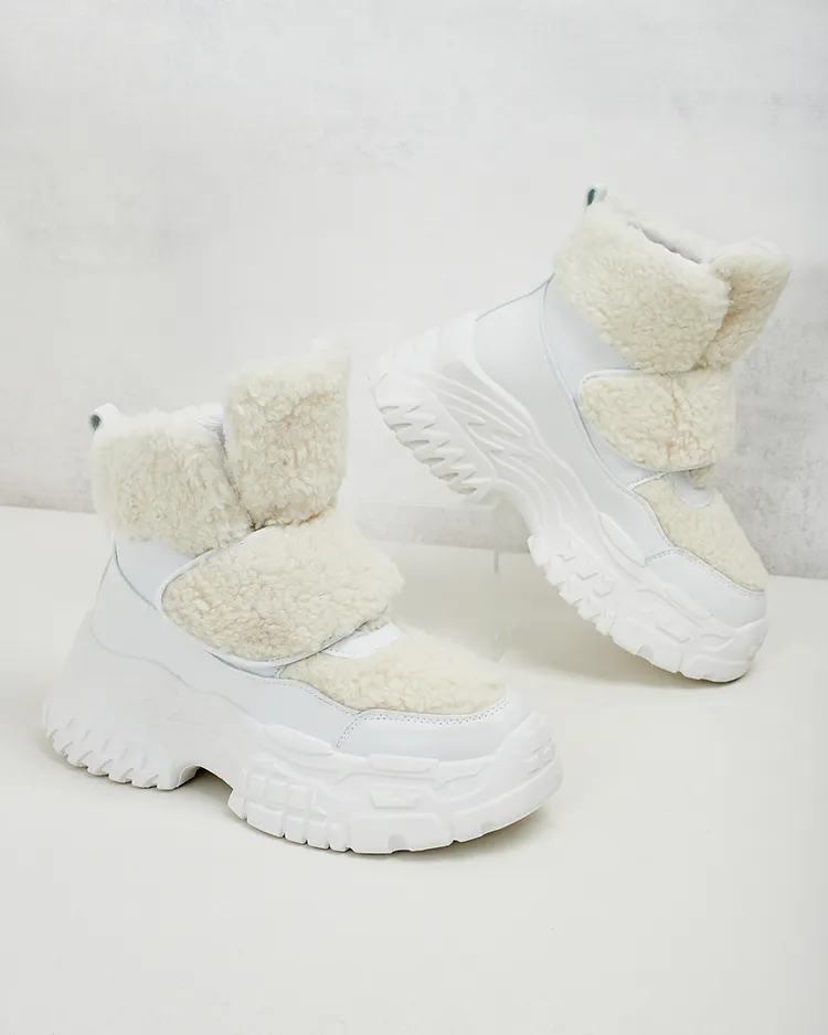 - Cizme de iarnă pentru femei atemporale. Partea superioară este realizată din piele ecologică cu inserții a'la piele de oaie. Izolație sub formă de blană în interior, pantofii au o închidere Velcro. Ideale pentru sezonul rece!