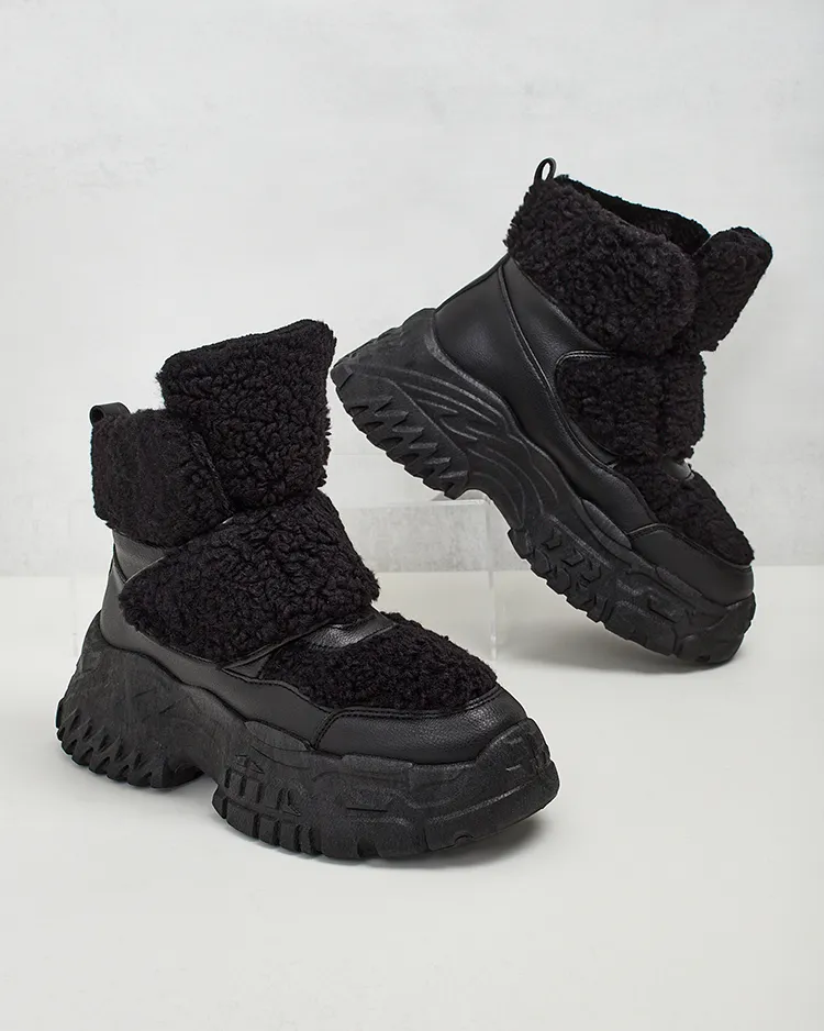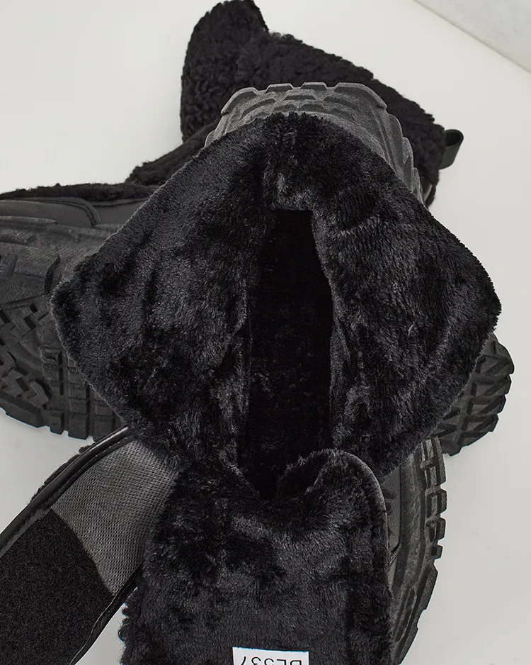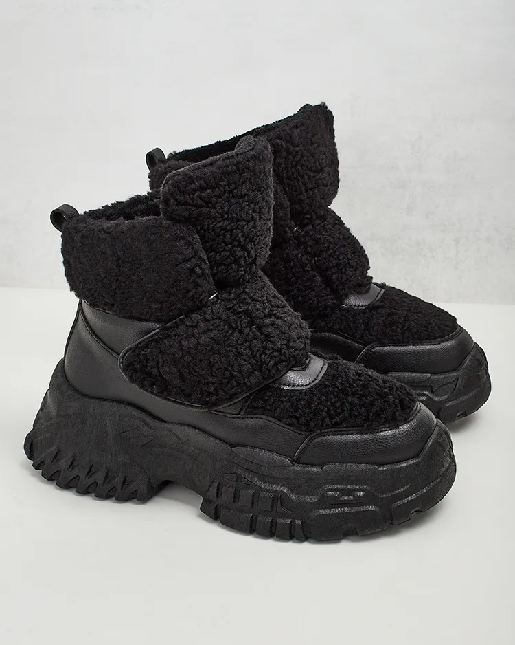 - Cizme de iarnă pentru femei atemporale. Partea superioară este realizată din piele ecologică cu inserții a'la piele de oaie. Izolație sub formă de blană în interior, pantofii au o închidere Velcro. Ideale pentru sezonul rece!