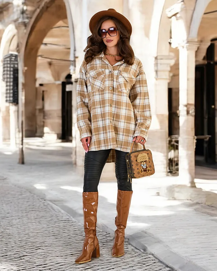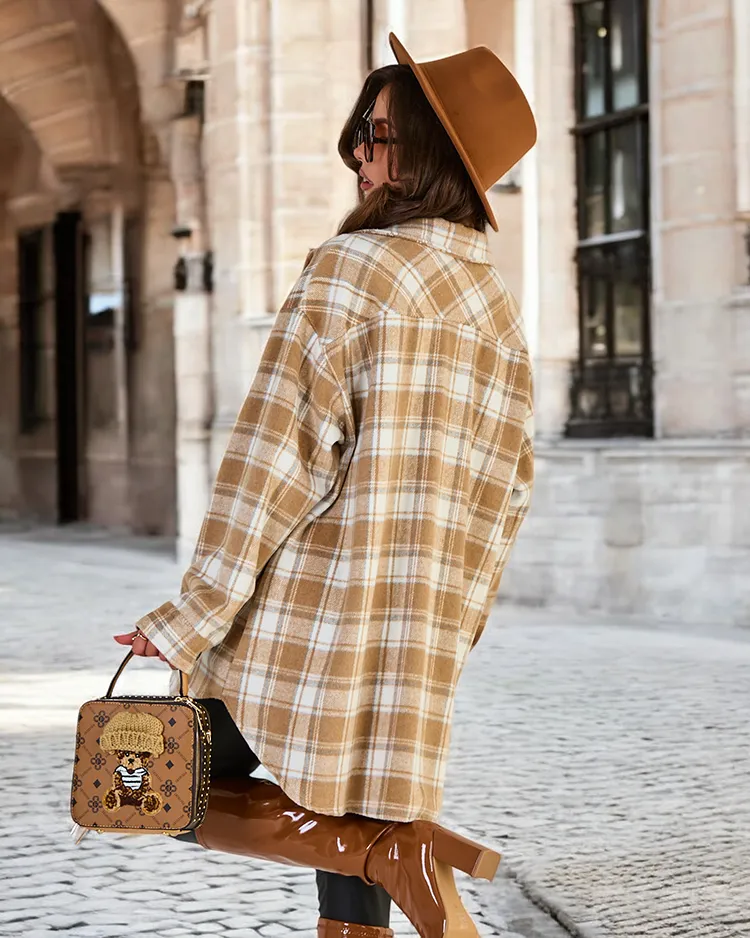 - Palton stilat tip cămașă pentru femei cu închidere cu nasturi. Haina tăiată supradimensionată are mâneci lungi și 2 buzunare. Grozav pentru toamnă!