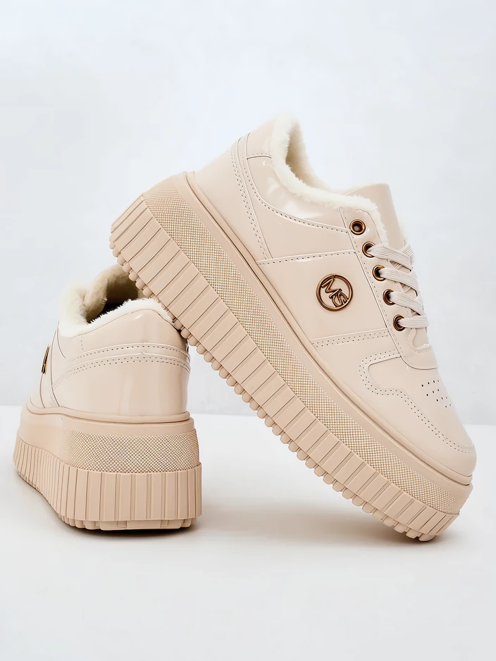 - Adidași sport de damă pe talpă mai groasă. Partea superioară cu șiret, din piele ecologică lăcuită. Interior complet izolat cu blană. Ideali pentru ținutele sport!