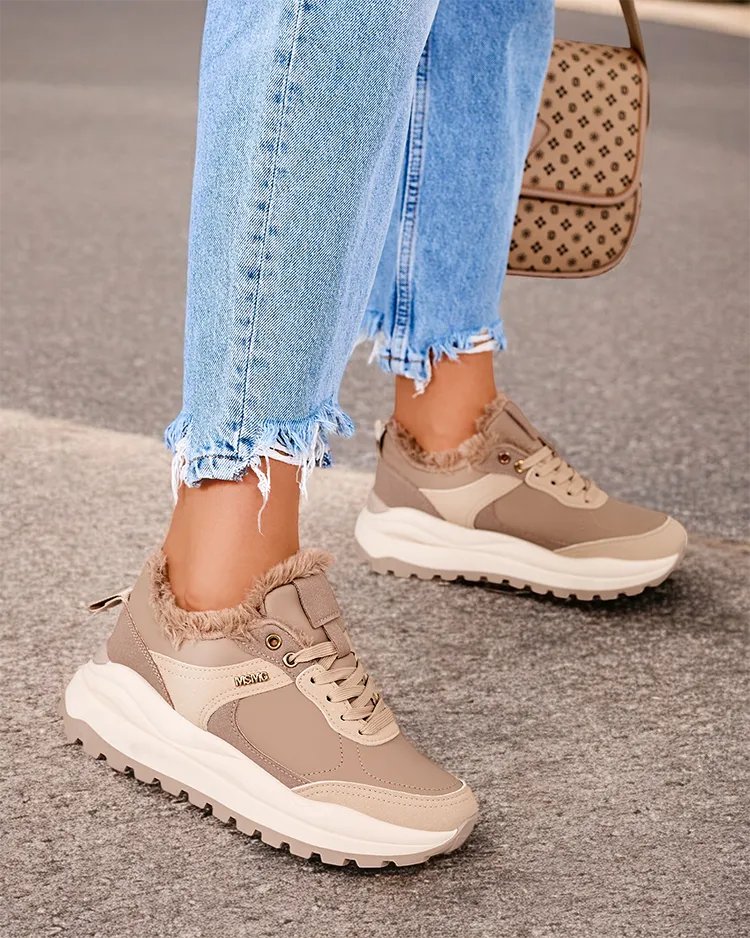- Pantofi sport izolați de damă pe o talpă mai groasă. Partea superioară cu șireturi din piele ecologică. Blană moale în interior. Super accesoriu pentru ținutele tale casual de iarnă!