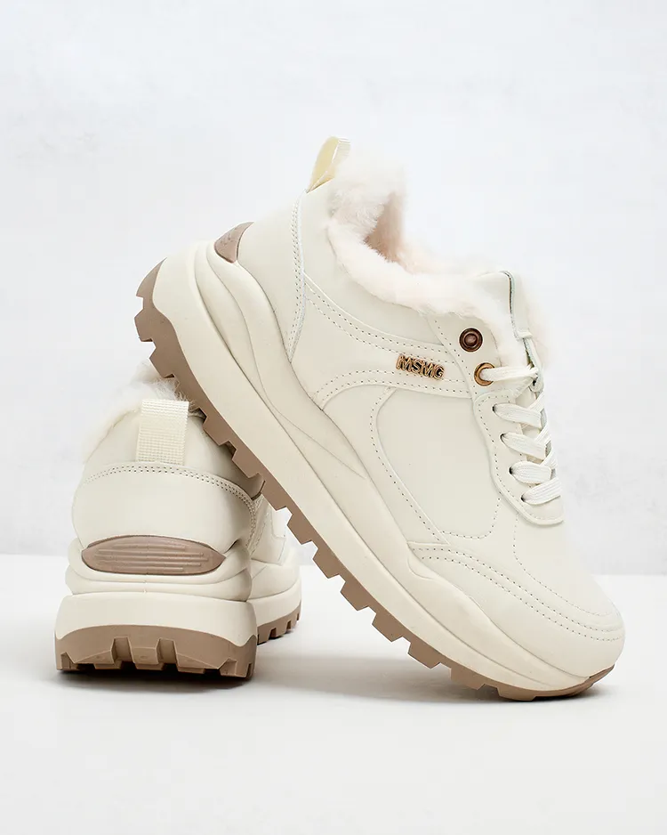 - Pantofi sport izolați de damă pe o talpă mai groasă. Partea superioară cu șireturi din piele ecologică. Blană moale în interior. Super accesoriu pentru ținutele tale casual de iarnă!